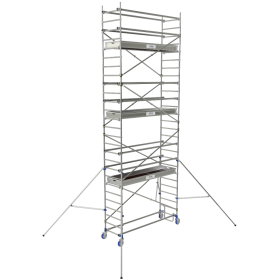 - Assurez-vous que les roues sont bien bloquées avant de monter sur l’échafaudage.