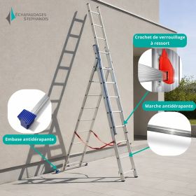 Nous proposons différents modèles adaptés à chaque besoin : échelles simples, télescopiques, coulissantes, fruitières, de toit, isolantes, et bien d’autres. Le choix du bon modèle dépend de la hauteur à atteindre, de la nature du travail à effectuer et des contraintes de sécurité.